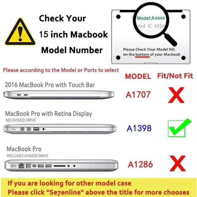 Se7enline Compatible with MacBook Pro 15 inch Case Model A1398 2015/2014/2013/2012 Laptop Hard Shell Protective Case&Sleeve Bag&Keyboard Cover Skin&Screen Protector&Dust Plug, Black
