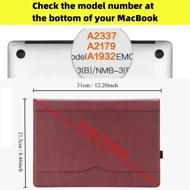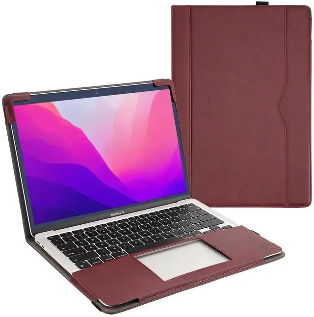TYTX Compatible with MacBook Air 13 Inch Leather Case, for Model A2337 M1 A2179 A1932 2018-2021 Retina Display Touch ID, PU Leather Laptop Case with Pocket for Papers and Pen Holder, Wine Red