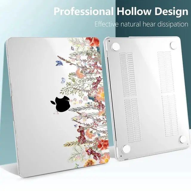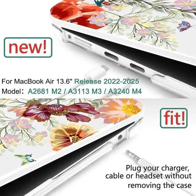 DONGKE for M4 MacBook Air 13.6 Inch Case 2025 2024 2023 2022 Model A3240 A3113 A2681 M3 M2 Chip, Plastic Hard Shell Case Cover with Touch ID for MacBook Air 13 Inch M4 - Floral Illustration