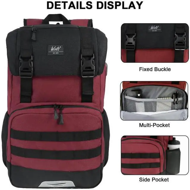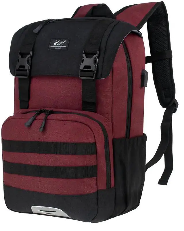 WOLT Laptop Backpack with USB Charging Port Fits Up to 17 Inch Laptop, College Backpack for Men Women, Computer Business Bookbag, Red