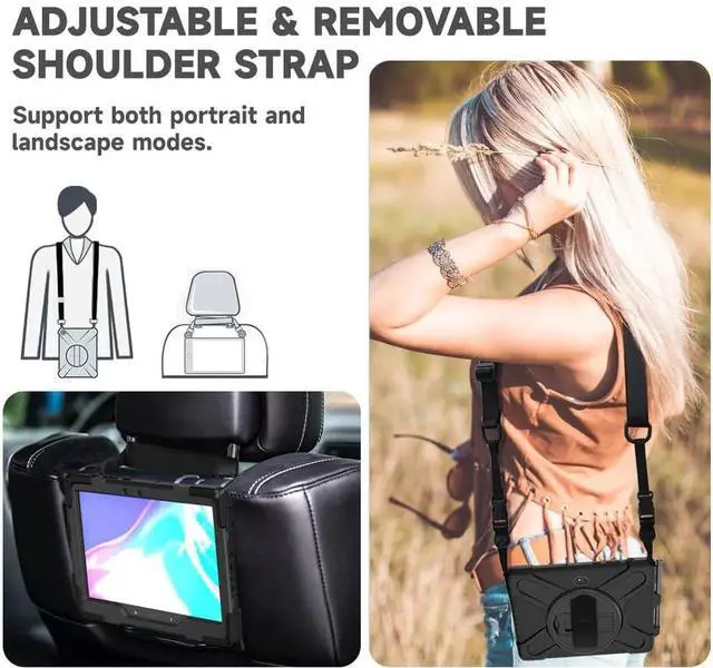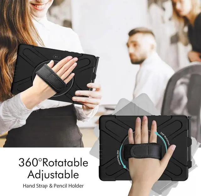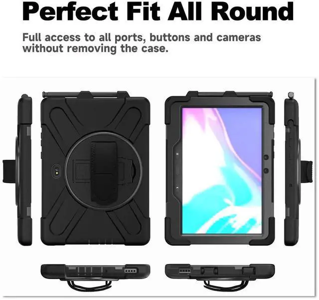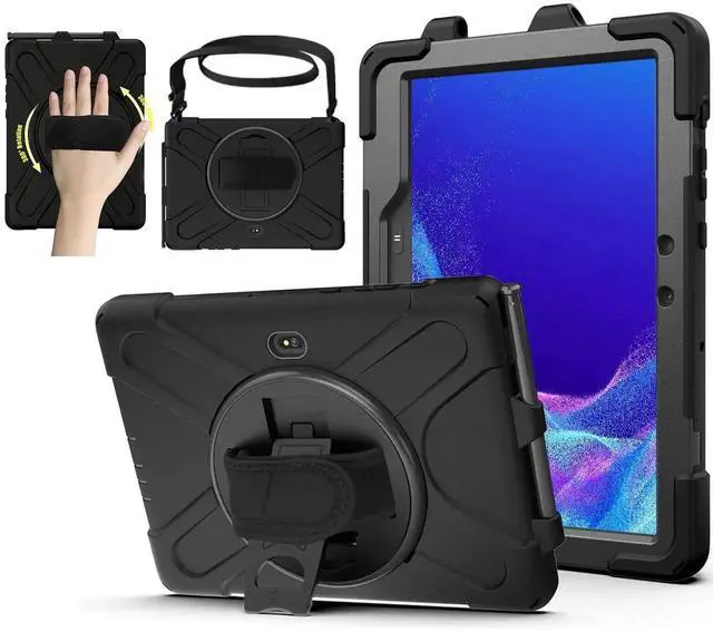 AOOCSHEY for Samsung Galaxy Tab Active5 Pro 2025/Active 4 Pro 2022/Active PRO 2019 10.1 inch Case, Heavy Duty Rugged Silicone Drop Business Protective Cover for Kids Rotating Stand Handle Strap, Black