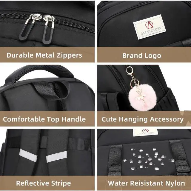 AO ALI VICTORY Laptop Backpack 16 Inch Kids Elementary Middle High School Bag College Backpacks Women Work Business Back Pack Travel Rucksack Large Bookbag for Teens Girls Womens Students, Black