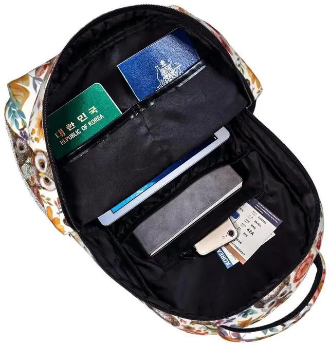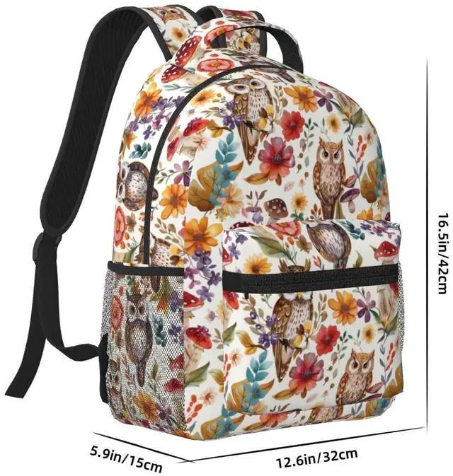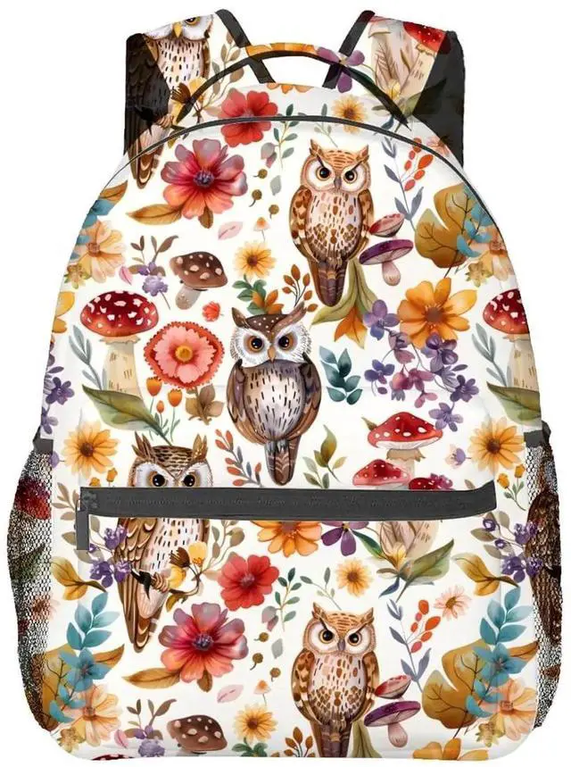 Adorable Owl & Mushroom Backpack, Travel School Laptop Polyester Cute Bird Backpacks for Women Kids, Work Sports Back Pack Casual Daypack, Lightweight Rucksack Gifts for Hiking Camping Gym