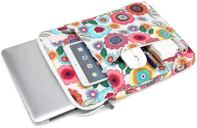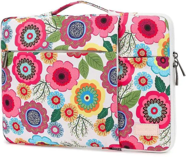 SANFAN 360° Protective 3 Pockets Laptop Sleeve Case Bag with Handle for MacBook Air 15 inch, MacBook Pro 16 inch and 15.6 inch Screen Laptop (Flowers)