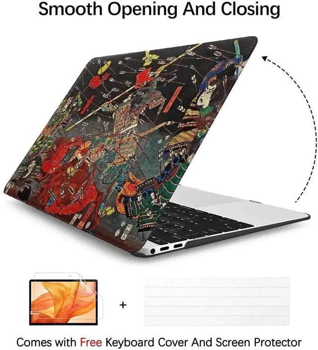 Berkin Arts Compatible with MacBook Pro 13 inch Cover, 2022, 2021, 2020-2018 Release A1708 with Keyboard Cover & Screen Protector Ukiyo-e (The Kusunoki's Final Attack by Kuniyoshi)
