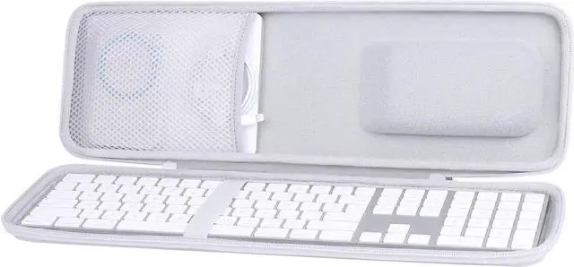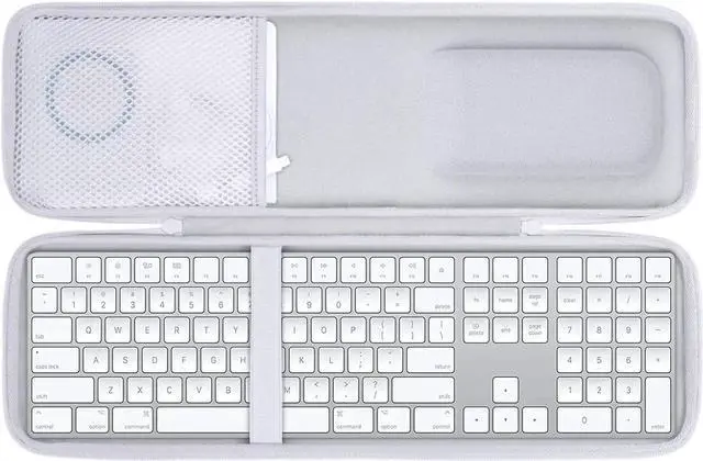 The hard case is suitable to replace the Apple keyboard 100 percent, the interior is made of high-quality velvet, and the soft inner structure ensures the protection of the Apple 100 percent keyboard. This Apple Touch ID keyboard comes with a comfortable hand strap for easy access for travel or storage, and the inner mesh pocket not only secures your magic keyboard case but also