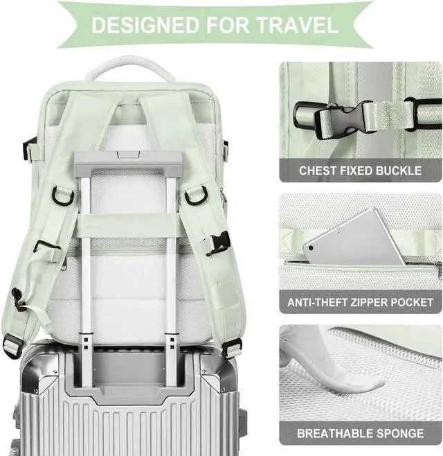 WONHOX Carry on Travel Laptop Backpack for Women Men Flight Approved,Backpack for Women Travel Bag Hiking Outdoor Sports Rucksack Casual Daypack, Mint Green