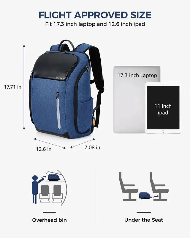 Ponhog 17 Inch Laptop Backpack for Men, Business Travel Anti-Theft Backpack with USB Charging Port, Water Resistant Computer Bag Carry On Flight Approved for Work College Weekender, Light Blue
