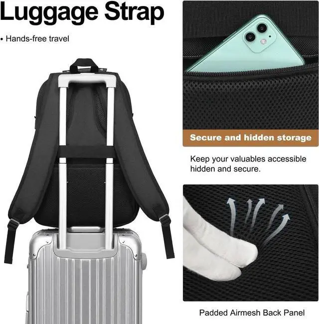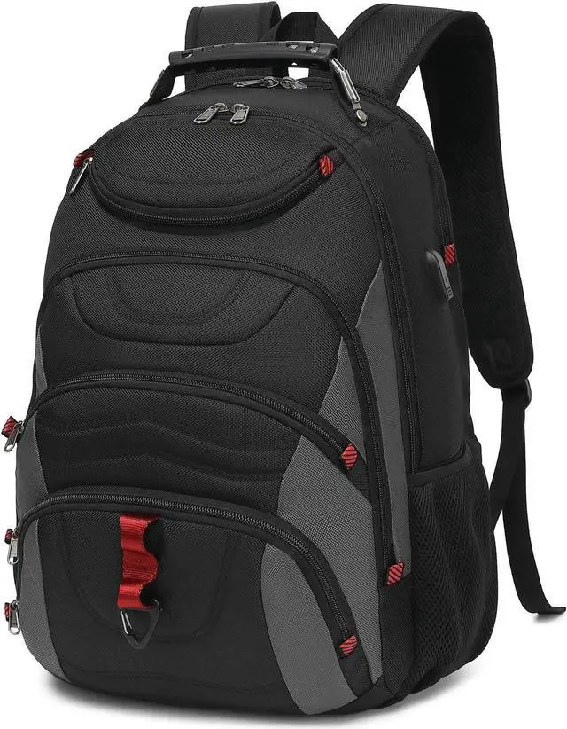 Boavan Laptop Backpack for men, 17.3 inch Laptop Bag with USB Port, Waterproof Travel Work Backpack Purse, Anti-Theft Teacher Nurse Doctor Casual Bookbags Office Business backpackBlack&Dark Grey