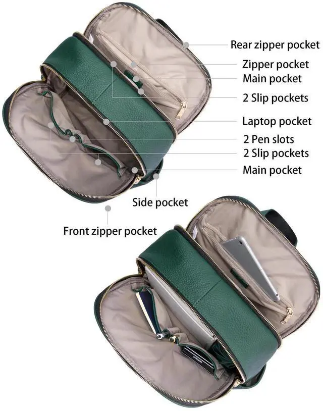 Structure -- 2 main pocket,4 inner pocke,2 pen pocket,1 inner zipper pocket,1 laptop pocket,1 front zipper pocket,1 rear zipper pocket and 2 side pocket,so you can easy to access and store stuff.