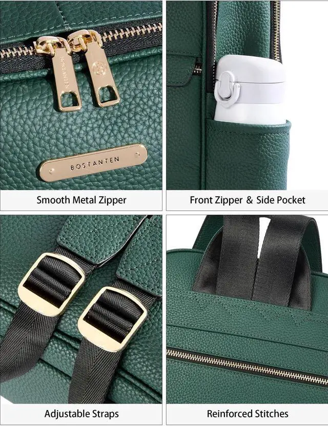 BOSTANTEN Genuine Leather 15.6 inch Laptop Backpack Purse for Women College Casual Backpack Travel Bag Daypack Green