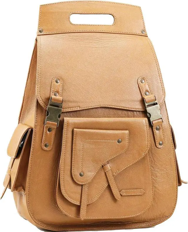 Handmade World Full Grain 18 Inch Leather Laptop Large Backpack Casual Bookbag Daypack Camping Travel Rucksack Knapsack (Camel Brown)