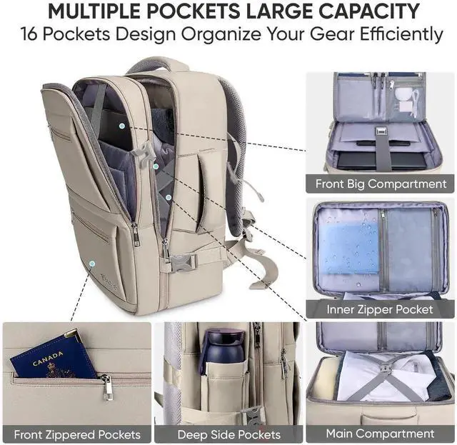 Large Capacity: The travel laptop backpack comes in two sizes: L (17"x12.6"x7"), weighing 1.5 lb, with a 28 L capacity, and XL (20"x13.7"x9"), 2.2 lb, 40 L capacity, expandable to 48 L; This backpack for travel offers a large capacity with dedicated spaces for your laptop, books, wallet, clothing, shoes, and other essentials; The multi-pocket design ensures that your items are organized and easily accessible