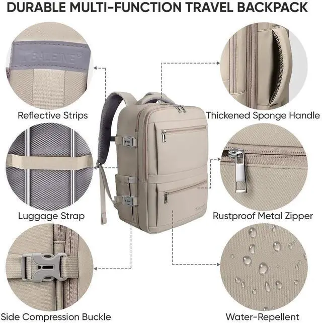 BALEINE Travel Backpack for Women Men, Large Sturdy Carry On Laptop Backpack Gifts for Business, Casual, Weekender, Hiking (Large, Khaki)