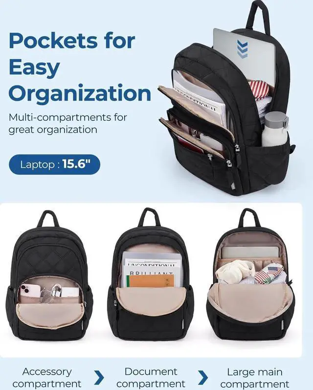 Ample Storage Capacity: Organize effortlessly with the BAGSMART Laptop women Backpack's spacious compartments. Equipped with 1 large main compartment for books and essentials, a dedicated 15.6" laptop sleeve, two exterior compartments pocket, and a convenient front access pocket for quick-grab items. Dimensions: 17.3×11.8×7.9 inches ensure you have room for everything you need
