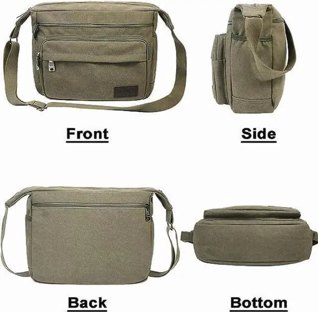 15" Canvas Messenger Bag Multi Pockets Crossbody Bag for Outdoor Activities Laptop bag for Business Travel (Green)
