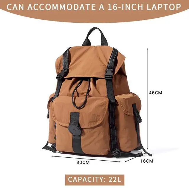 Smart Multi-Compartment Organization: Dedicated padded laptop sleeve (fits 15.6" devices) + front quick-access pocket.Two side pockets for water bottles/umbrellas + anti-theft inner pocket for valuables.Spacious main compartment with drawstring closure for secure, clutter-free storage.