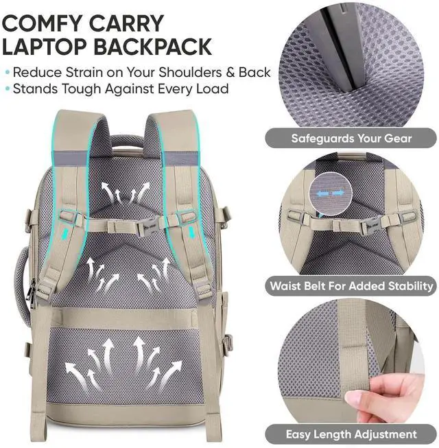 BALEINE Travel Backpack for Women Men, Large Sturdy Carry On Laptop Backpack Gifts for Business, Casual, Weekender, Hiking (Large, Khaki)
