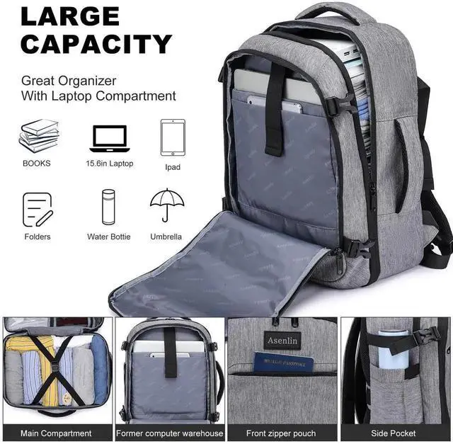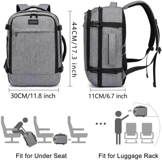 Asenlin 30L Travel Backpack for Women and Men,Fit 15.6 Inch Carry on Backpack Flight Approved LuggageWeekender Bag Water Resistant Laptop Backpack-Grey
