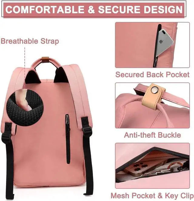 EASY TO ORGANIZE: The fashion backpacks main compartment is with zipped closure,water-bottle pockets on both sides, Laptop Padded sleeve, 1 zipped pocket,1 mesh pocket and some small pockets inside,1 outer front pocket with mesh pocket inside and a key clip,a secured back pocket,adjustable air mesh padded Reinforced Strap,Super comfortable breathable back panels.