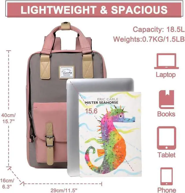 VINTAGE DESIGN: The Vaschy daily casual backpack is made of high quality water resistant soft durable Vinylon fabric.The vintage design features a rectangle, streamlined shape with two top handles for hand toting and adjustable backpack straps that make it easy and comfortable to carry.There are two water bottle pockets on both sides for keeping the water bottle and umbrella.