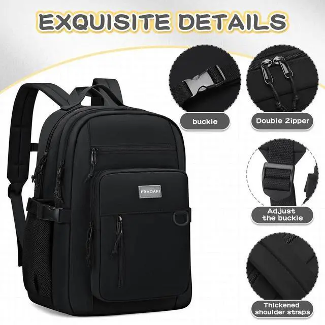 PRAGARI Kids Backpack for School Cute Aesthetic Black Backpack Girls Student Bookbag Women Travel Lightweight Book Bag