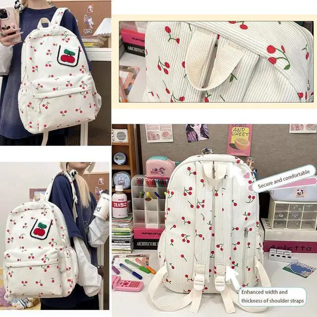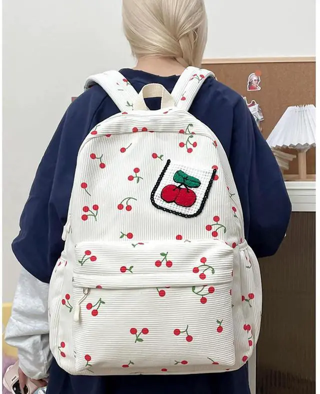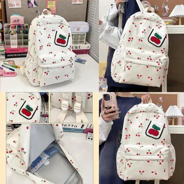 Design:Quality fabric with cherry patterns and color made a cute bag.Thoughtfully designed compartments in the backpack