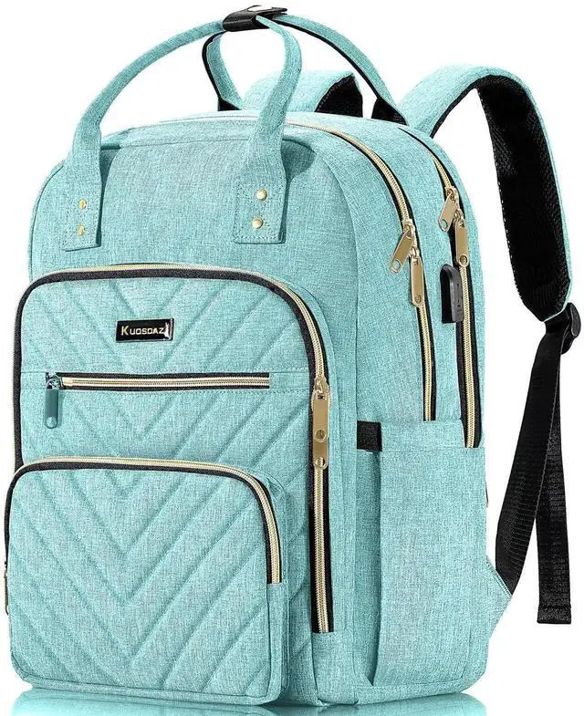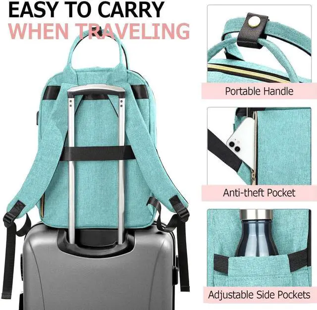 Laptop Backpack for Women, High School Bookbag for Girls with USB Port Charging, 15.6 Inch Water Resistant Computer Bag for Work, Travel College Back Pack Purse Gifts for Student Teacher, Light Green