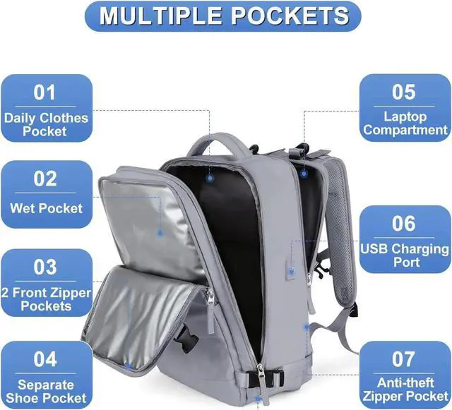 coofay Large Personal Item Travel Backpack For Women Men Airline Approved Carry On Flight Waterproof Sports Luggage Casual Daypack Small Hiking