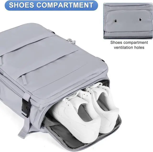 SEPARATE SHOES COMPARTMENT AND WET POCKET: The shoes compartment can hold a pair of slippers or low-top sneakers, allowing you to switch freely in different states of travel, business trips and outdoor sports; the wet pocket is made of high-density waterproof material, which can be used with to store wet items, making your stay in a hotel or apartment more convenient.