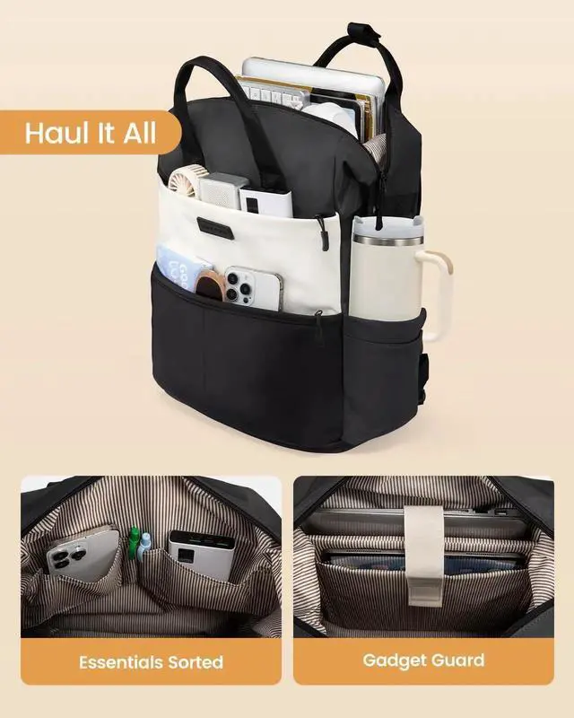 LOVEVOOK Laptop Backpack for Women, 15.6 Inch Work Travel Backpack Purse for School College Bookbag for Teen Girls Cute Computer Backpack for Teacher Nurse Business, Black-Beige