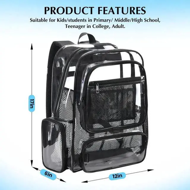 Durable & Heavy Duty Design Built to last, the Bormelun Clear Backpack is made from high-quality, tear-resistant PVC material, ensuring it can withstand daily wear and tear. Perfect for school, work, or stadium events, this backpack is both sturdy and reliable