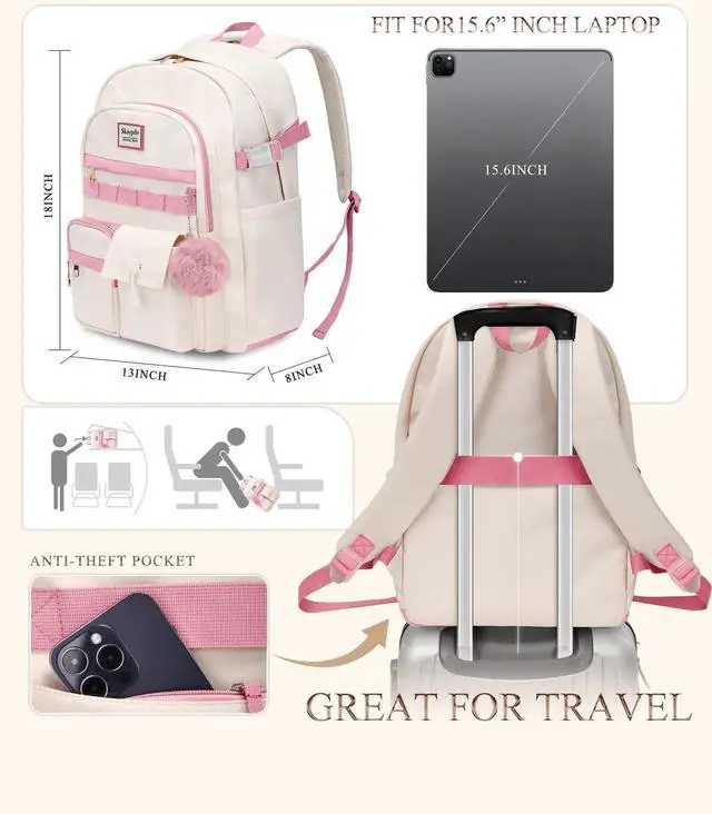 Cute backpack for girls teens, Girls Backpack for School, School bookbag for Girls Teens college Students, Backpack for Women, Water Resistant school bag, mochilas escolares para niñas, Bookbag, Pink