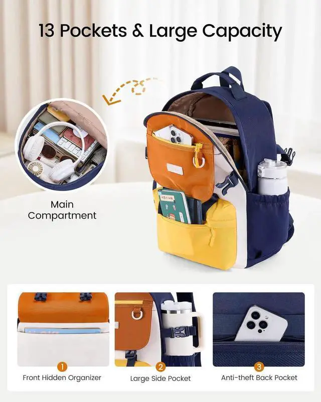 LOVEVOOK School Backpack for Girls with Large Tumbler Holder Pockets, Student Cute Bookbag 17.3 inch Laptop Daypack for Middle School Teen, Waterproof College Travel Bag for Women