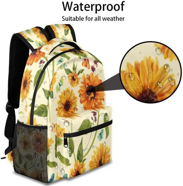 School Backpack Material: Our yellow flower sunflower school backpack is made of waterproof, lightweight and durable twill weave material with smooth zippers. Ensure comfy & long-lasting everyday,school &travelling usage.