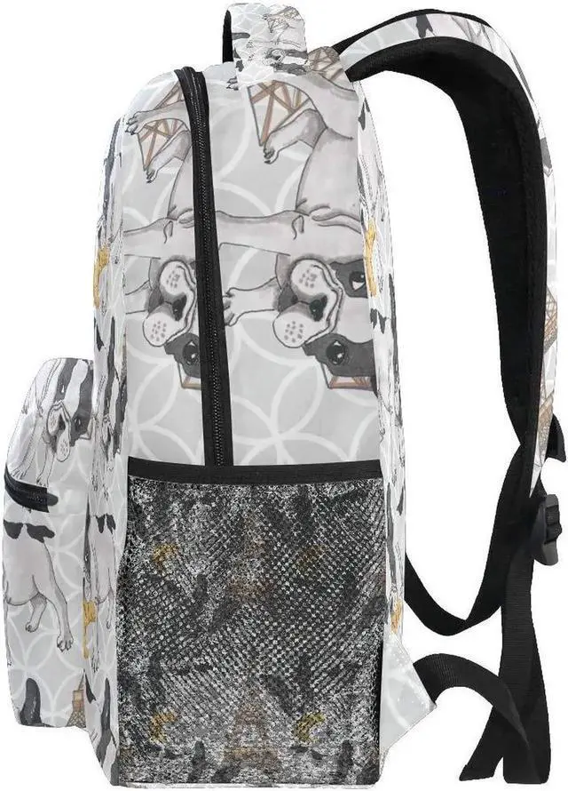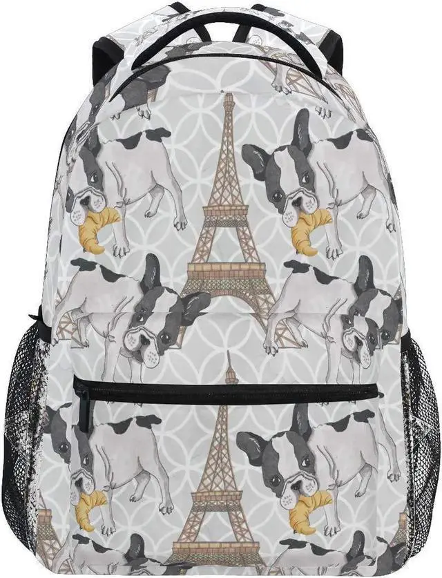 AUUXVA Backpack Paris Eiffel Tower French Bulldog School Shoulder Bag Large Waterproof Durable Bookbag Laptop Daypack for Students Teens Girls Boys Elementary