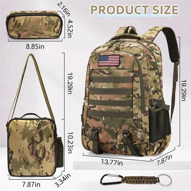 Versatile for All Occasions & Ideal Gifting: Designed for elementary, middle, and high school boys, this camo backpack set fits school, travel, camping, hiking, and daily casual use. With stylish camo pattern and practical structure, it makes a perfect gift for back-to-school season, Christmas, New Year, birthdays, and holidays.