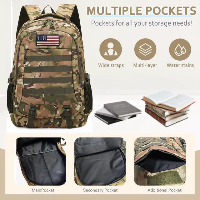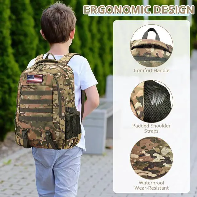Functional MOLLE Webbing System:Built with heavy-duty MOLLE webbing, this boys tactical backpack supports attachment for extra pouches and gear. It works great as a school bookbag for daily classes, and also performs well for hiking, camping, trekking, traveling, and other outdoor adventures.
