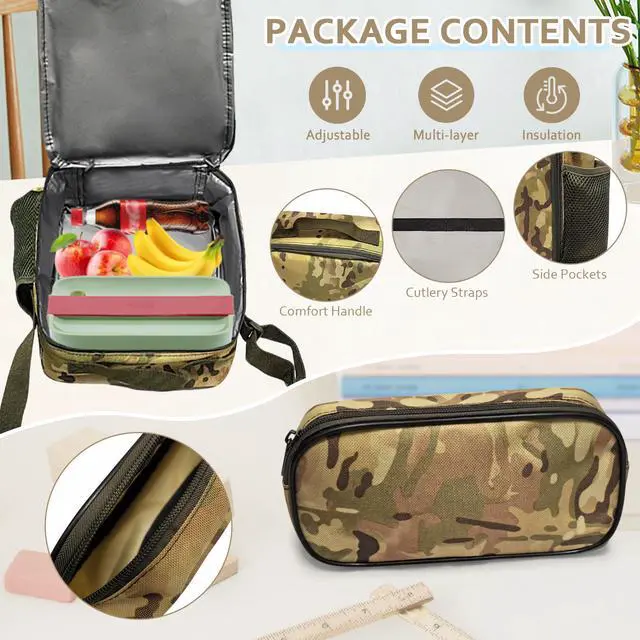 3-IN-1 Camo Backpack Set for Teens & Boys: This all-in-one camo bundle comes with a tactical-style backpack, insulated lunch box, and matching pencil case, perfectly built for active young adventurers. Ideal for daily school, outdoor activities, and versatile on-the-go use.
