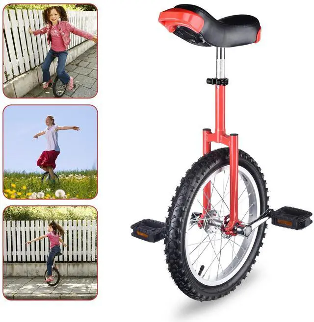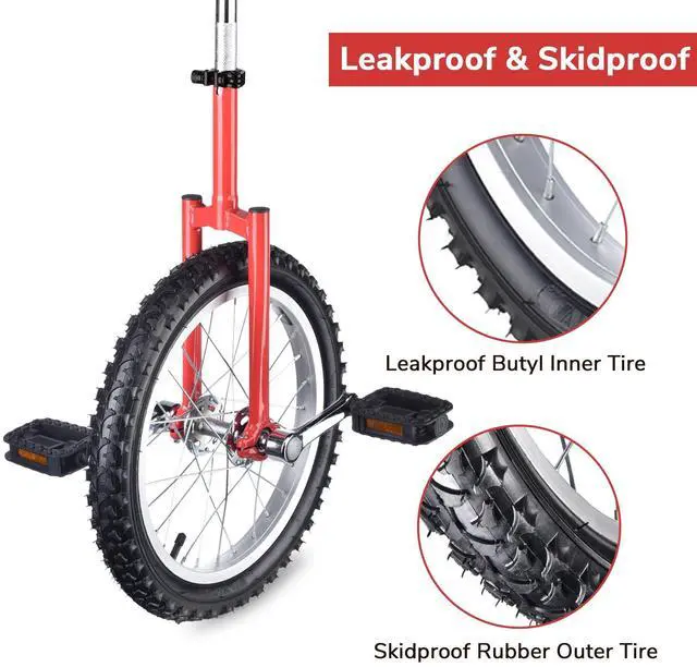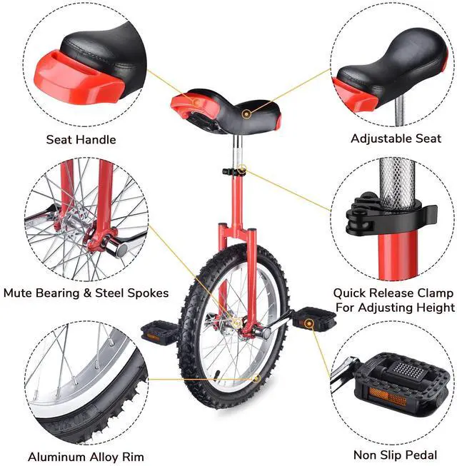 - Solid Construction - 16" Unicycle with strong manganese steel frame and thick aluminum alloy rim for durability; steel design of 28 spokes for stability and mute bearing for noiseless riding, ideal for kids and teenagers to practice riding and improve balance