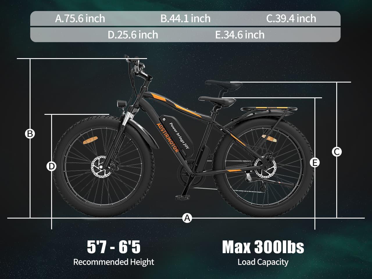 AOSTIRMOTOR S07-B 750W Electric Bicycle, 26" * 4" Fat Tire, 48V 13AH Removable Lithium Battery, Max Speed 28MPH, Shimano 7-Speed, Front Fork Suspension(Black)
