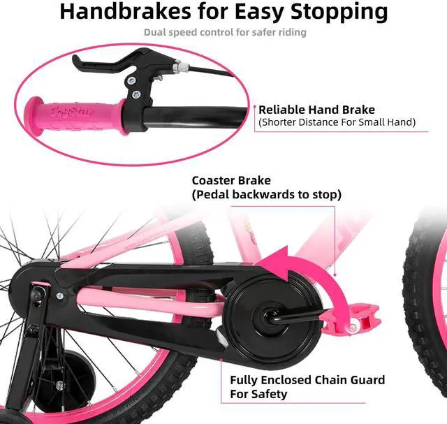 Joystar Tough HI-TEN steel frame is durable and elegant, easily survives the multiple bumps, keeping kids ride smooth and easy, and making the ride full of relax and joy.