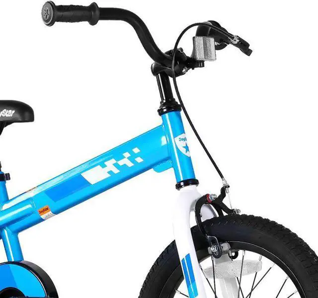 This kids' bicycle is designed with single-speed coaster braking and a HI TEN steel frame that's elegant, yet durable. Ride in style with equipment that won't scratch or break after just a few dings. The bike has a quick-release seat that allows for easy height adjustment and a parent assist holder that's convenient to grab during the learning process. With the included training wheels and a kickstand, young riders can safely learn to stop and go.