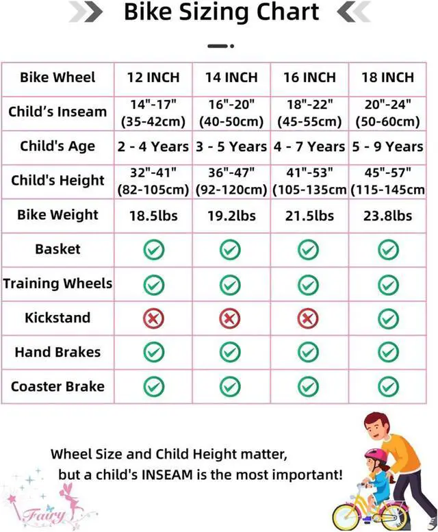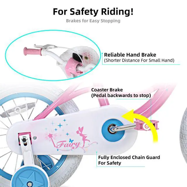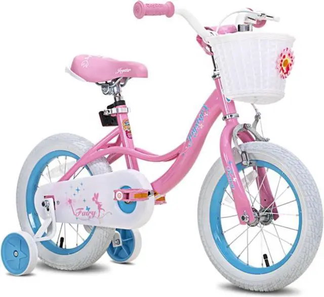 This pink bike comes with a DIY decal, allowing kids to customize their bike with their very own design! The white handlebar basket with a flower is the perfect way for kids to travel with all of their favorite treasures. Kids 2-4 years old or 32-41 inches tall will love learning with the Joystar Fairy 12 Inch Kids Bike.