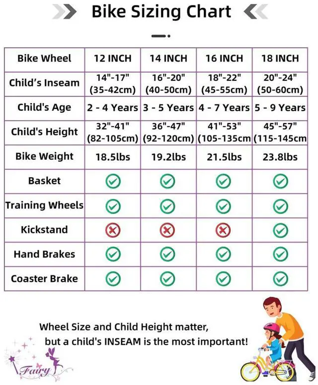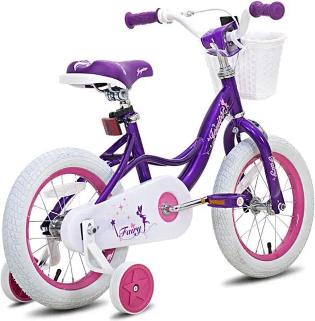 This purple bike comes with a DIY decal, allowing kids to customize their bike with their very own design! The white handlebar basket with a flower is the perfect way for kids to travel with all of their favorite treasures. Kids 4-7 years old or 41-53 inches tall will love learning with the Joystar Fairy 16 Inch Kids Bike.