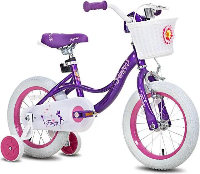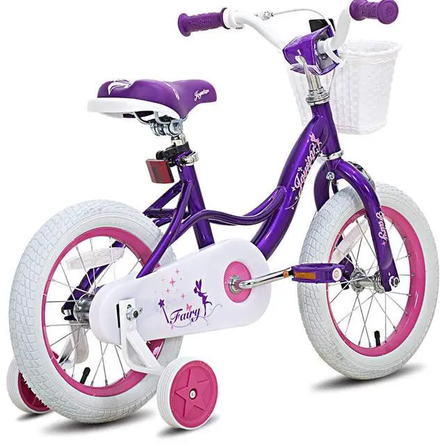 This purple bike comes with a DIY decal, allowing kids to customize their bike with their very own design! The white handlebar basket with a flower is the perfect way for kids to travel with all of their favorite treasures. Kids 2-4 years old or 32-41 inches tall will love learning with the Joystar Fairy 12 Inch Kids Bike.