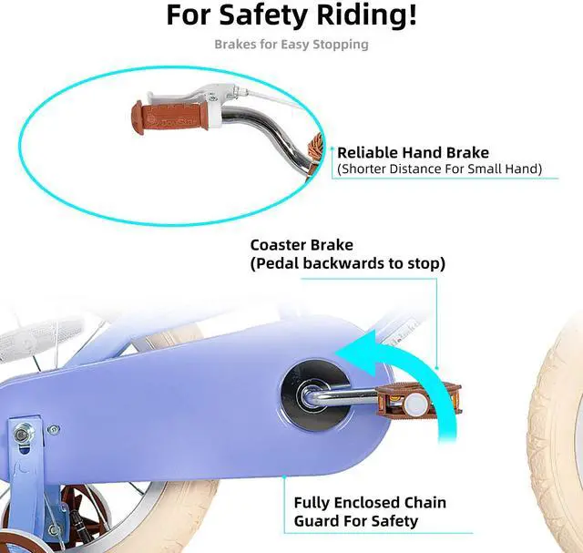 • Dual Brake System for Enhanced Safety: Our children's bike prioritizes safety with a reliable front caliper brake and a easy-to-use rear coaster brake. This dual system allows your child to stop smoothly and safely, making this kids bike a trustworthy choice for parents