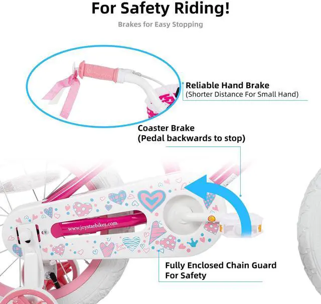 Durable High-Carbon Steel Frame: Built with a robust high-carbon steel frame, the JOYSTAR Angel bicycle withstands rough use and supports active play. This sturdy construction ensures stability and longevity, making it a dependable kids bike for daily adventures