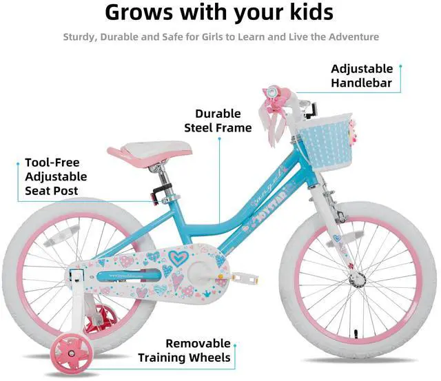 joystar kids bike boy girl children youth bicycle toddler training wheels basket low-step frame