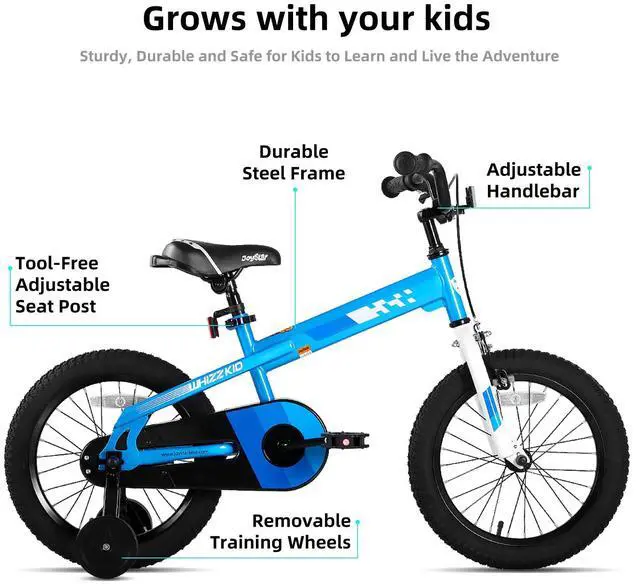 Durable & Safe Frame for Young Riders: The JOYSTAR Whizz kids bike features a high-tensile steel frame, built to withstand years of active play. Its durable construction ensures stability and safety for children aged 2-9. Paired with removable training wheels, this children's bicycle offers confidence and balance support for beginners, making every ride secure and joyful